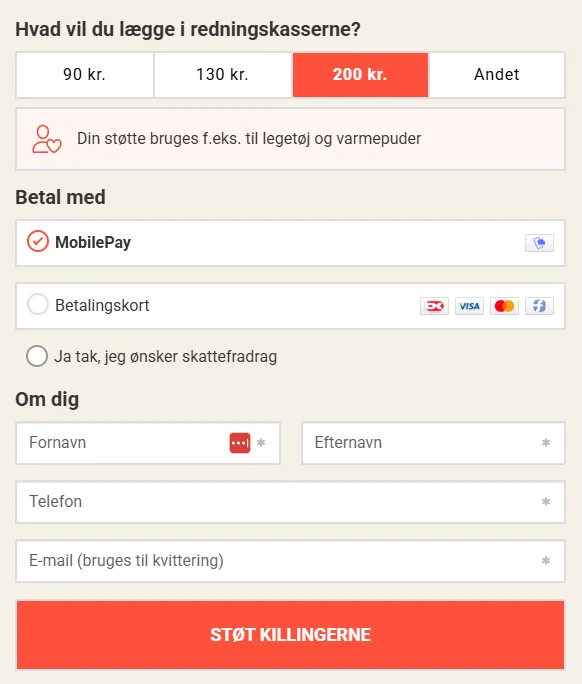 In collaboration with Henrik from Dyrenes Beskyttelse have designed a form that clearly shows the connection between the donated amount and the purpose.