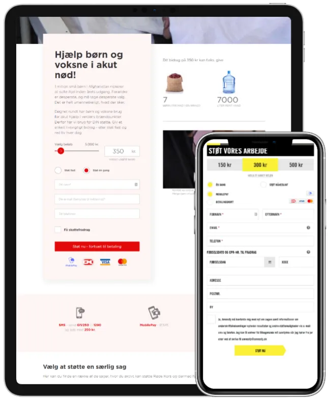 På hjemmesiden, i telefonen, på gaden. Uanset hvor du møder donor, kan du anvende MobilePay som betalingsmetode - Ensartet dataflow til CRM